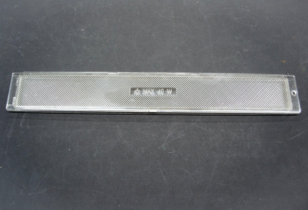 Diffuser lamp cover for some F&P rangehoods. 387mm length, 55mm width. Has "MAX 40W" moulded on the cover and a single screw hole at one end. F&P: HF60LW4, HF60LX4