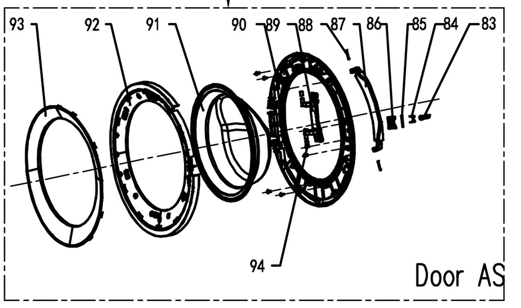 Washing machine door part, #91 in photo, door window only for Eurotech ED-FLW9WH