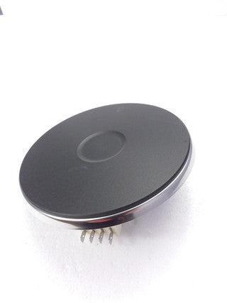 Solid hotplate hob element, 145mm, 1000 watt, high profile (8mm chrome dress ring). Cast iron top is black. Can be wired single or three heat as required. Spade terminals. ROBINHOOD: RHFS60WE VOGUE: 310142