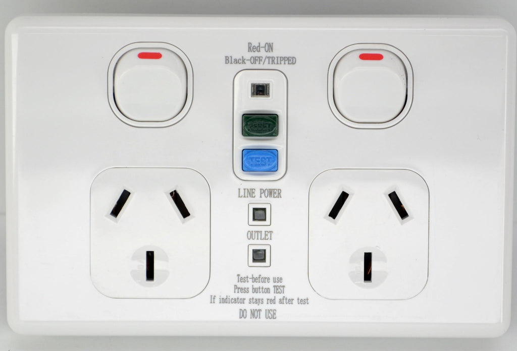 RCD Power Point Double 10A, 30mA, Type A RCD to AS/NZS3190. Can also protect "downstream" power points. Best value RCD socket on the market.