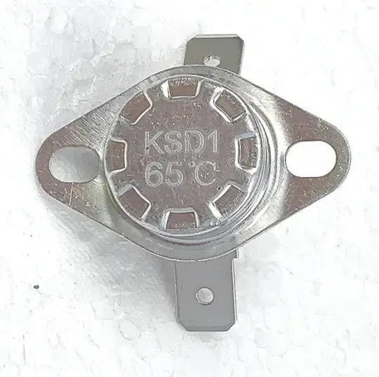 Temperature limiter for some models of dryer. Rated 65 degrees C, 250 volts AC, this is the safety thermostat that controls the element circuit. EUROMAID: BVD60, DE6KG, VVD60 TRIESTE: GDZ60-09E, TGDZ60-09E