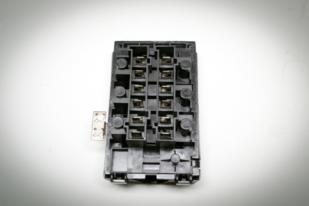 Mains terminal block, the connection between the fixed wiring and the appliance for some models of Vogue & Robinhood oven & cooktop. These usually burn out due to poorly tightened connectors within the block, its important to have these fitted by a qualified electrician. Designed to be connected with circular flexible cable.