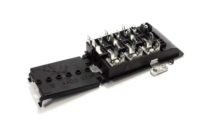 Mains terminal block, the connection between the fixed wiring and the appliance for some models of Vogue & Robinhood oven. These usually burn out due to poorly tightened connectors within the block, its important to have these fitted by a qualified electrician. Designed to be connected with circular flexible cable.