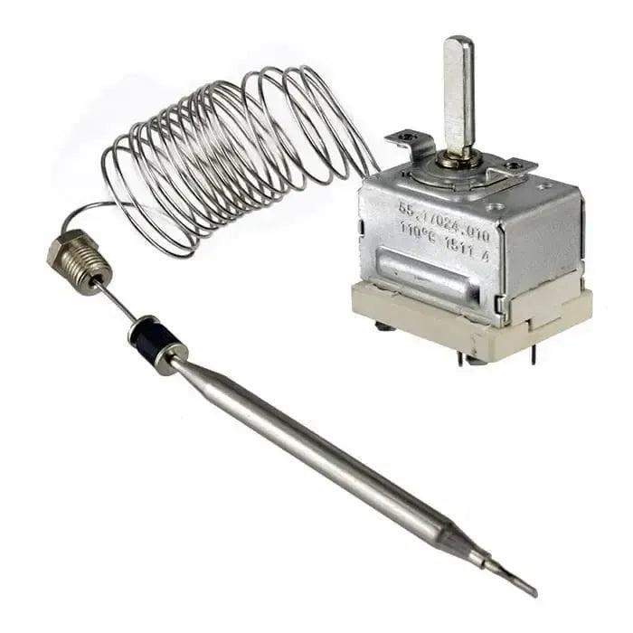 Thermostat for the control of dairy water heaters, bain maries, commercial heating cabinets, 30-110 degree, 16 amp, 1400mm capillary: